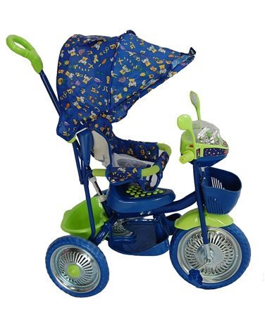 Для более увлекательной прогулки велосипед оборудован музыкальной панелью. А для того, чтобы малыш мог взять с собой свои любимые игрушки велосипед 107 А7 имеет переднюю и заднюю корзины.