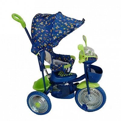 Трехколесный велосипед 107 А7 оборудован ручкой управления, тентом и подножками, что позволяет использовать его как прогулочную коляску для малыша.