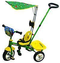 Когда малыш научится крутить педали и будет кататься самостоятельно, ручку и тент можно будет снять.