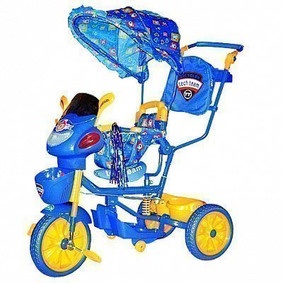 Детский трехколесный велосипед ST209H7 Boy оборудован ручкой управления, тентом и подножками, что позволяет использовать его как прогулочную коляску для малыша.