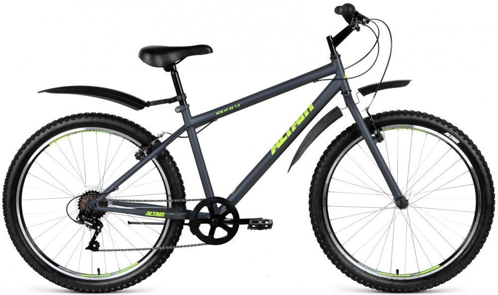 Горный велосипед Altair MTB HT 1.0 26" 2018-2019 на 26" колесах отлично подойдет для катания по городским дорогам и пересеченной местности. Оборудован навесным оборудование Altair хорошего качества. Ободные тормоза хорошо поддаются на скользкой дороге и на склонах. Велосипед собран на стальной раме Hi-Ten, которая отличается своей прочностью и долговечностью.