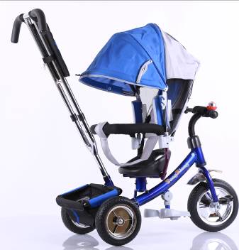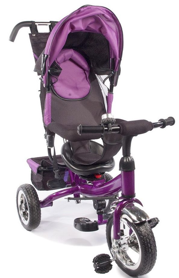 Детский трехколесный велосипед с ручкой управления.