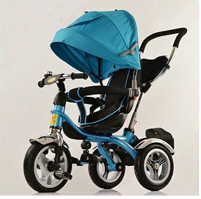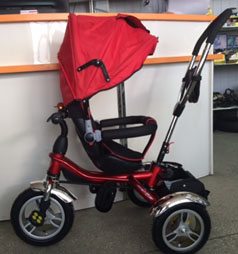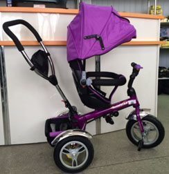 Детский трехколесный велосипед с ручкой управления.