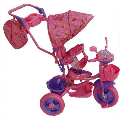 Трехколесный велосипед 209 А1 оборудован ручкой управления, тентом и подножками, что позволяет использовать его как прогулочную коляску для малыша. Также велосипед комплектуется дополнительным рюкзаком и подстаканником на ручке управления.