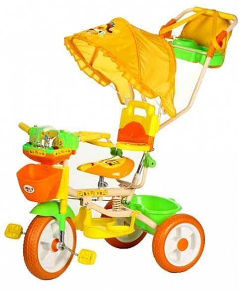 Для более увлекательной прогулки велосипед оборудован музыкальной панелью. А для того, чтобы малыш мог взять с собой свои любимые игрушки велосипед 209 имеет переднюю и заднюю корзины