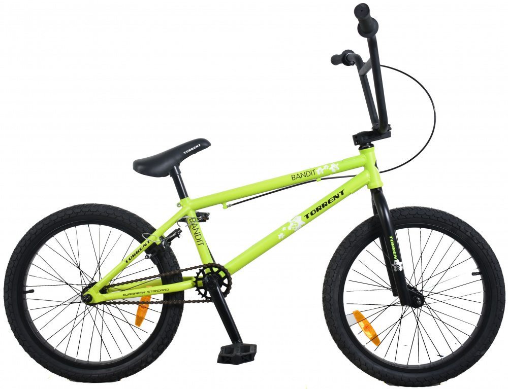Велосипед Torrent Bandit предназначен не только для езды, но и для выполнения различных трюков. Главной особенностью велосипеда BMX являются колёса размером 20", полное отсутствие подвески, наличие всего одной передачи, поворот руля на 360°. Велосипед Torrent Bandit обладает манёвренностью, относительно низким весом, ярким дизайном.